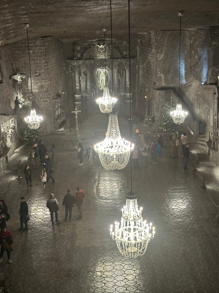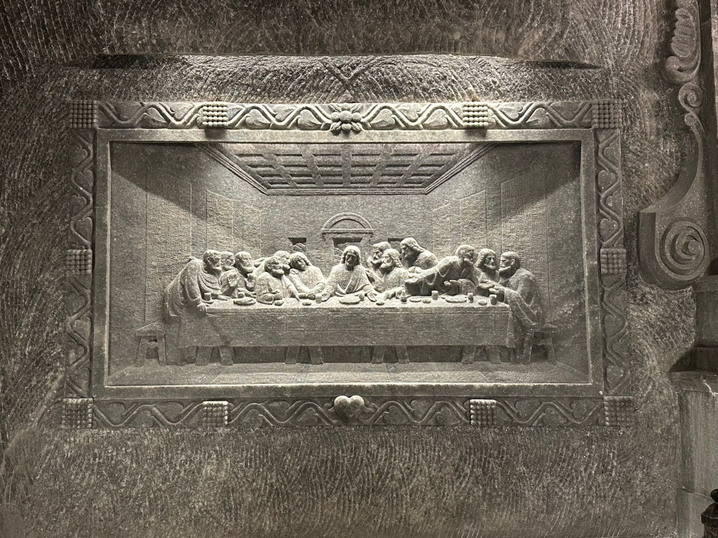 The tour of the Salt Mines was informational as well but not sad. It was very interesting to see how the salt was mined and how far deep the mines went down. Since salt is no longer truly mined, the tour included sculptures that were made of salt and scenes to show how it was mined. The Salt Mines also house three different chapels in which I believe one is available for weddings. Seeing the mines and how much can be done with salt was a bit mind blowing.